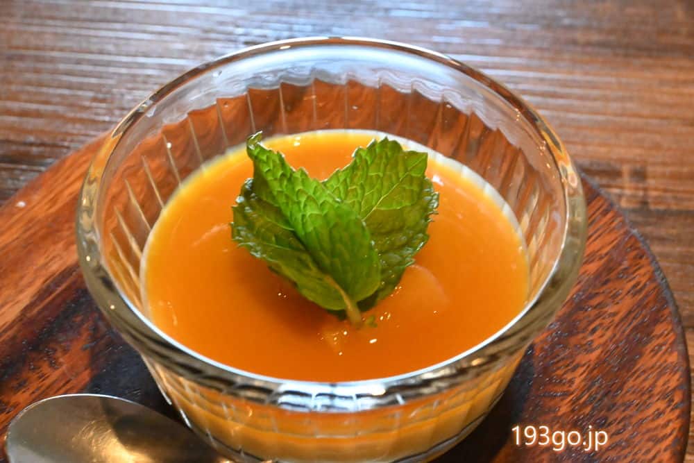 甘くトロトロのマンゴーソースがかかった、濃厚でなめらかな食感。