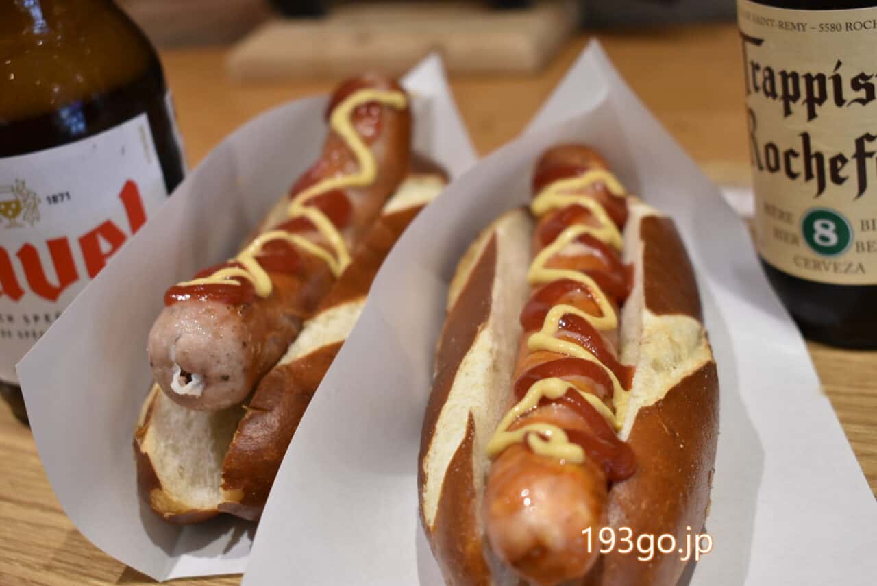 食べ応えのある焼きたてのハムやソーセージがベルギービールと共に楽しめる。