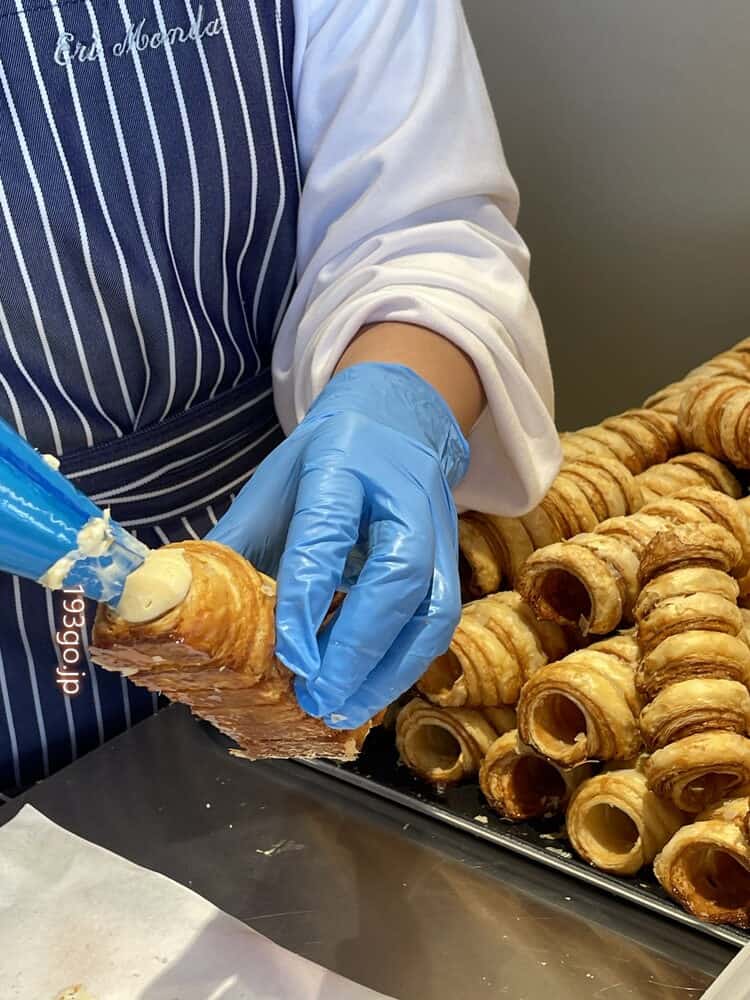 注文してからクリームを詰める。たっぷり搾ってくれる。おいしそう~。