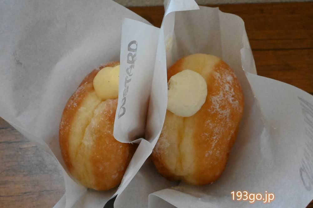 シュガーが塗された丸々したマラサダ。フワフワの生地に、甘さ控えめのなめらかクリーム。