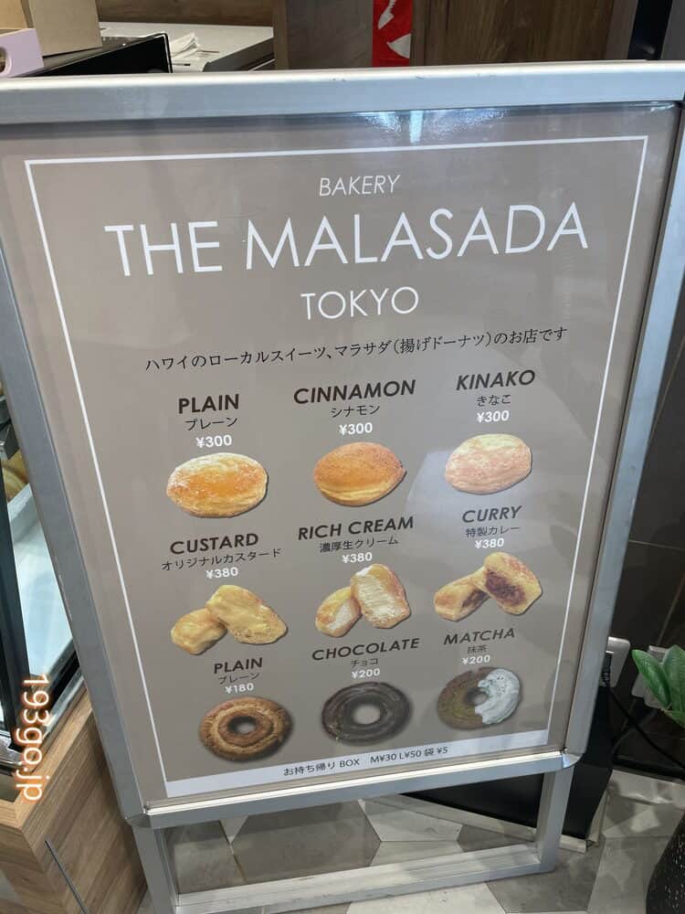 「THE MALASADA TOKYO(マラサダ東京)」のメニューと値段