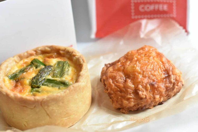 スコーンの表面はパルメザンチーズで香ばしく、中はしっとり、もちっ。