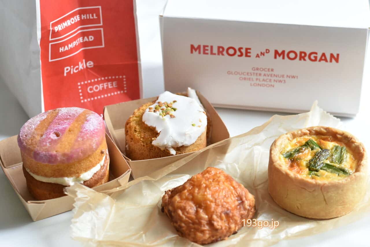 「メルローズ アンド モーガン」は、イギリス国内でローカルプロデュースされた原材料を中心にチーズ、ミルク、シーズナルな新鮮な野菜をふんだんに使ったボリューム満点のサラダミールを始め、ヘルシーで素材を生かしたペイストリーやセイボリーフードが揃う。