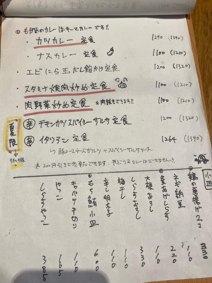 東急裏店は水曜はランチ営業のみ、他の2店舗(サンロードと西荻窪)は水曜休み。3店舗はメニューは大体一緒だそう(中には異なるメニューも?)。