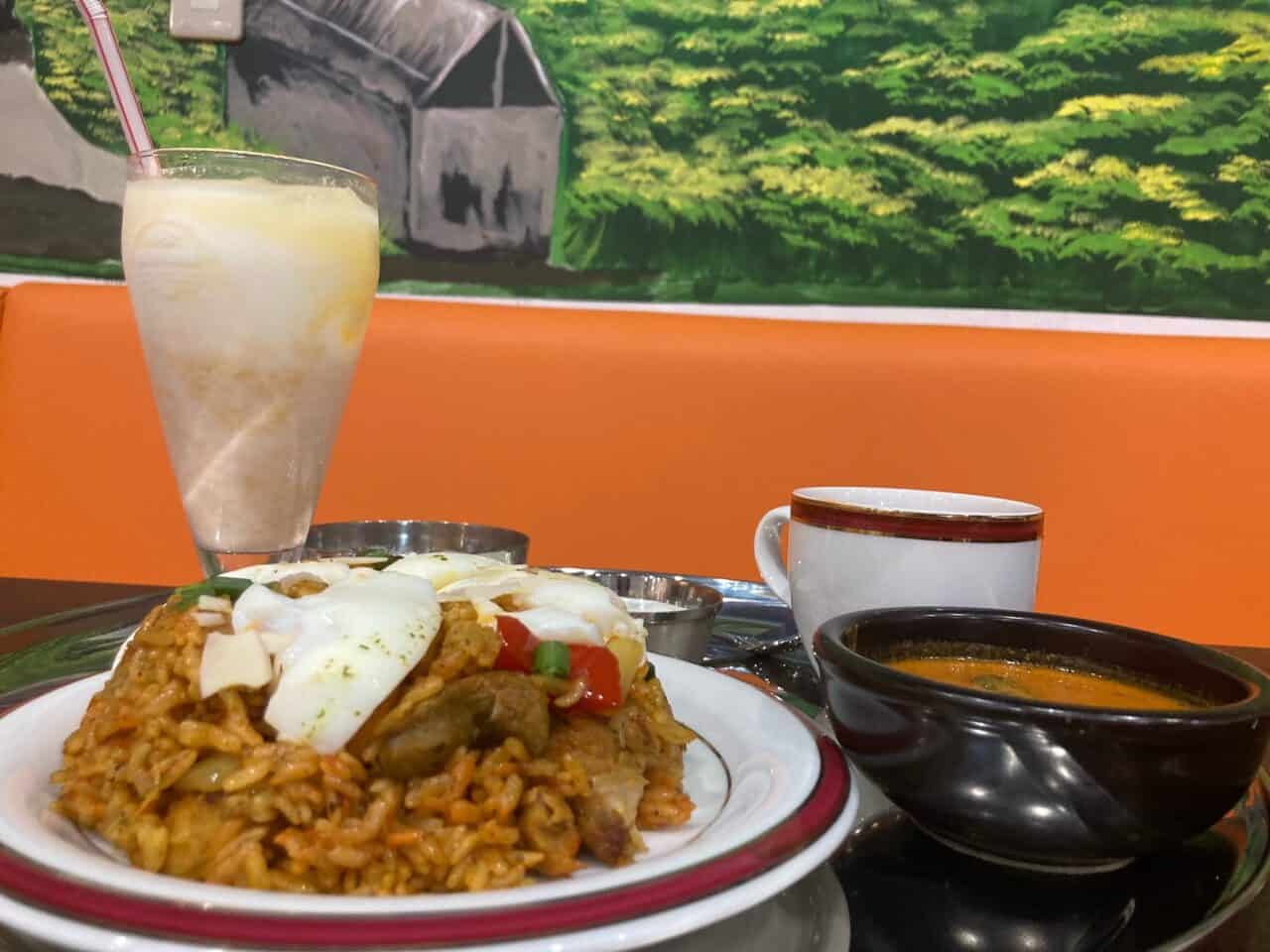 ビリヤニはこん盛りしたライスにゆで卵が埋められてる。