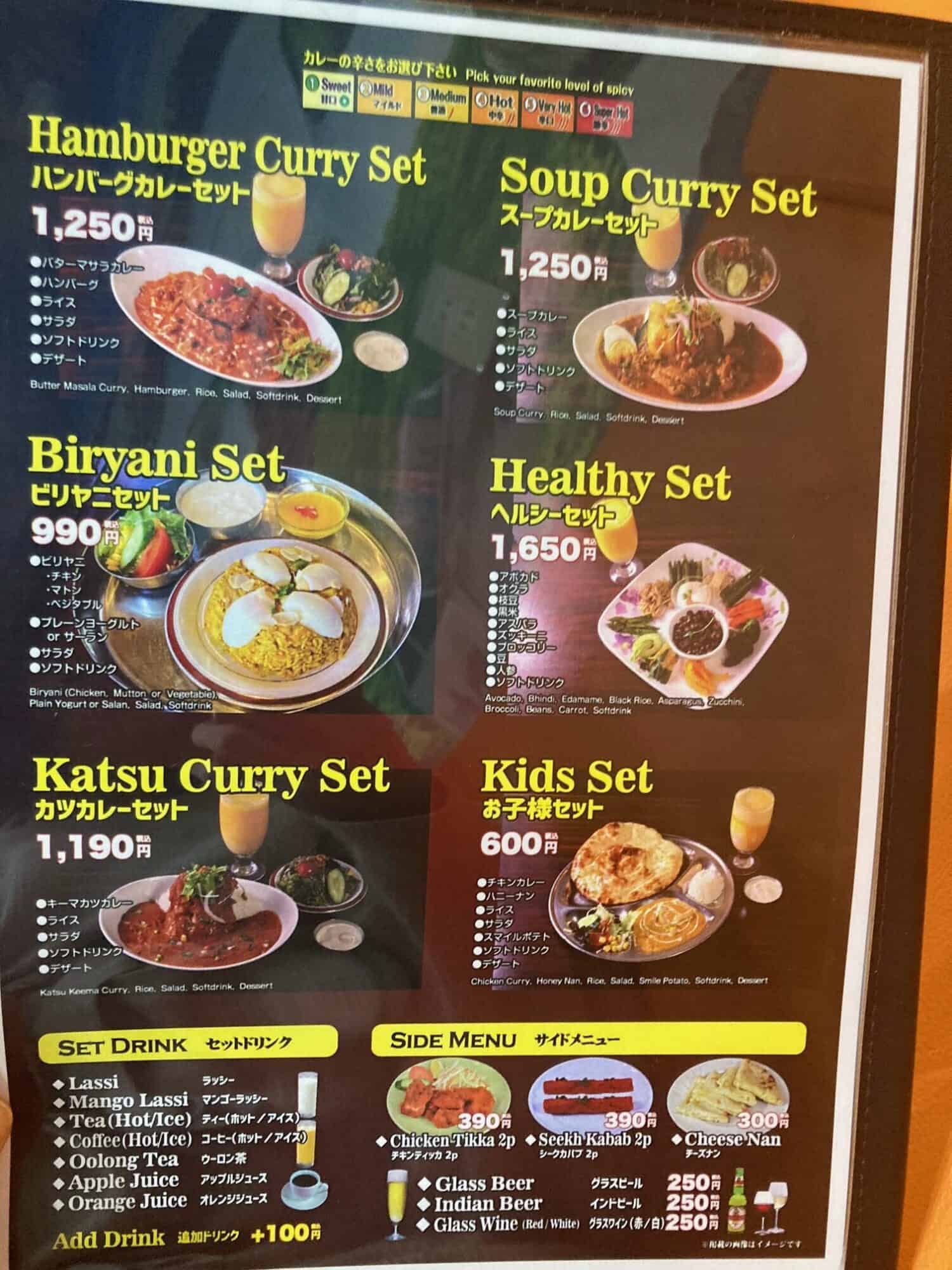 ランチは11:00~16:00までで、メニューを見ると、ナンorライスとカレーがセットになったものが種類豊富に用意されているインドやネパール料理店のスタイル。