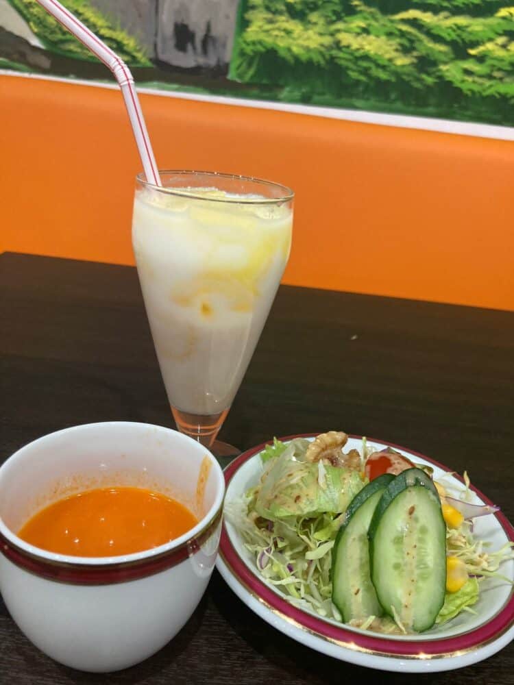 サラダとドリンク付きでドリンクはマンゴーラッシーに。
