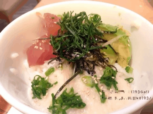 天然鮪とアボカドのとろろどんぶり。みそ汁付き