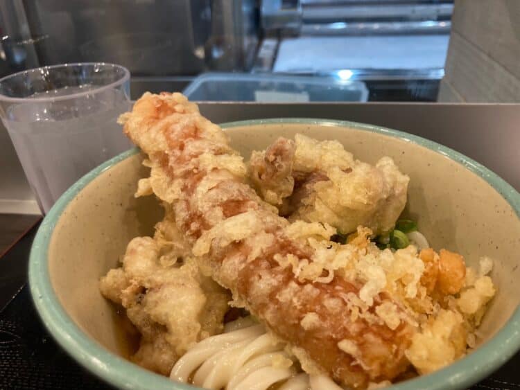 店内で立ち食い。とり天&ちくわ天ぶっかけ