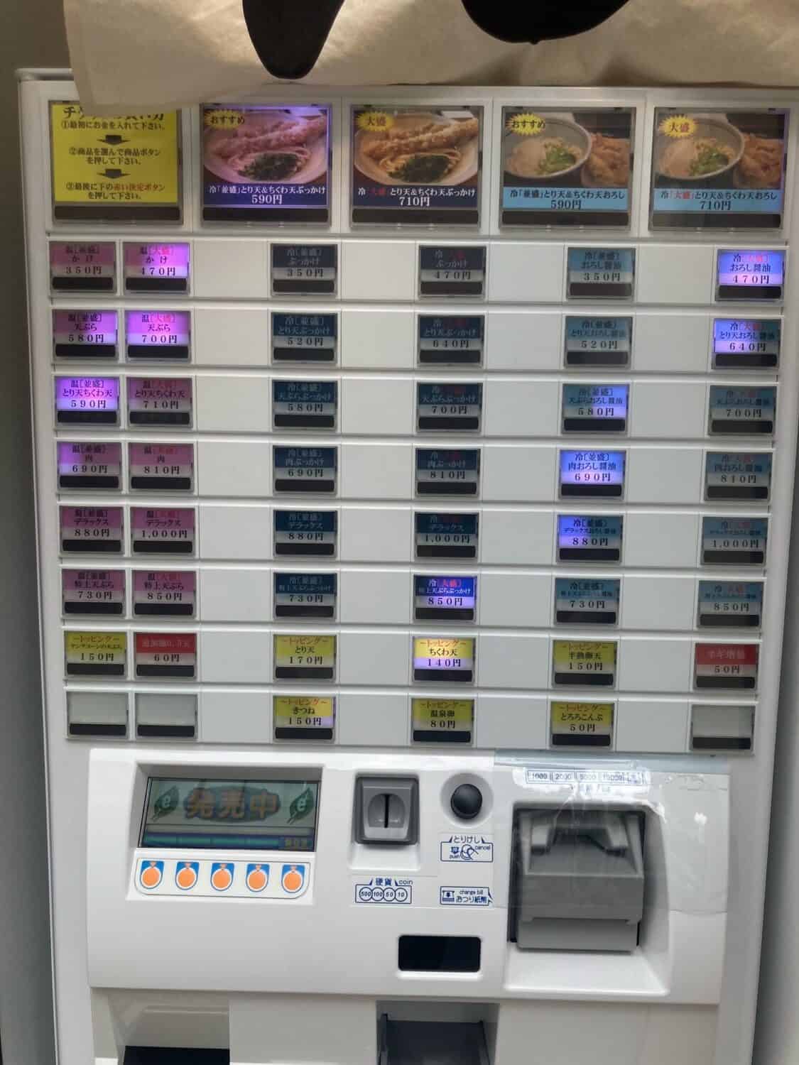 券売機でうどんを選ぶ かけうどん、ぶっかけ、おろし醤油の3カテゴリ 天ぷらも