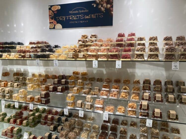 フルーツを使った商品の他、ドレッシングなどの調味料、レトルトカレー、スナック…全国から選りすぐりの物を集め、中には現地に行かないと手に入らない味噌なんかも。