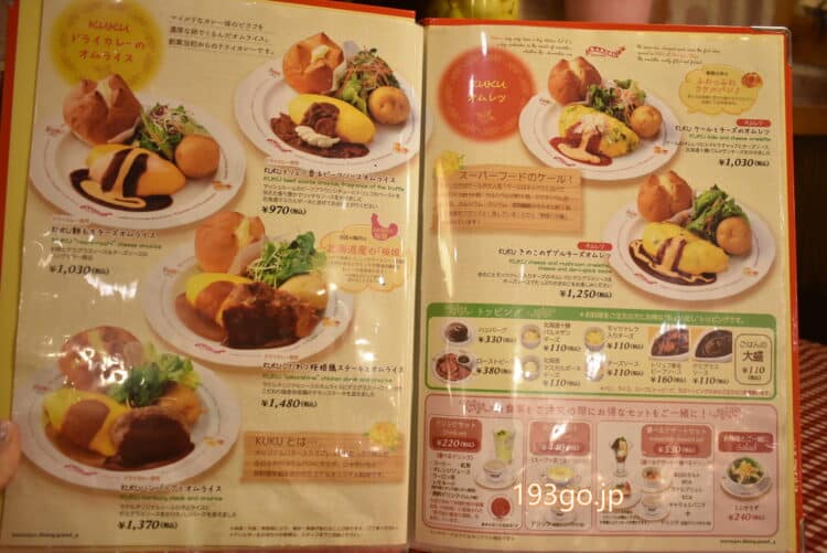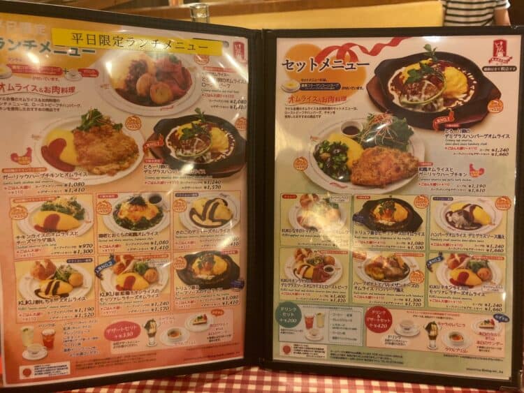 メニューはオムライスメインでデミグラスソースや、チキンやハンバーグとのコンボなど、種類豊富。