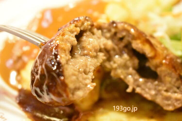 ハンバーグも割ってみると、肉汁ジュワ~。