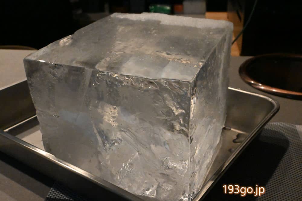 見ただけで涼しくなれる氷の塊(純氷)を削り、トッピングを重ね、再び氷を積もらせていく。