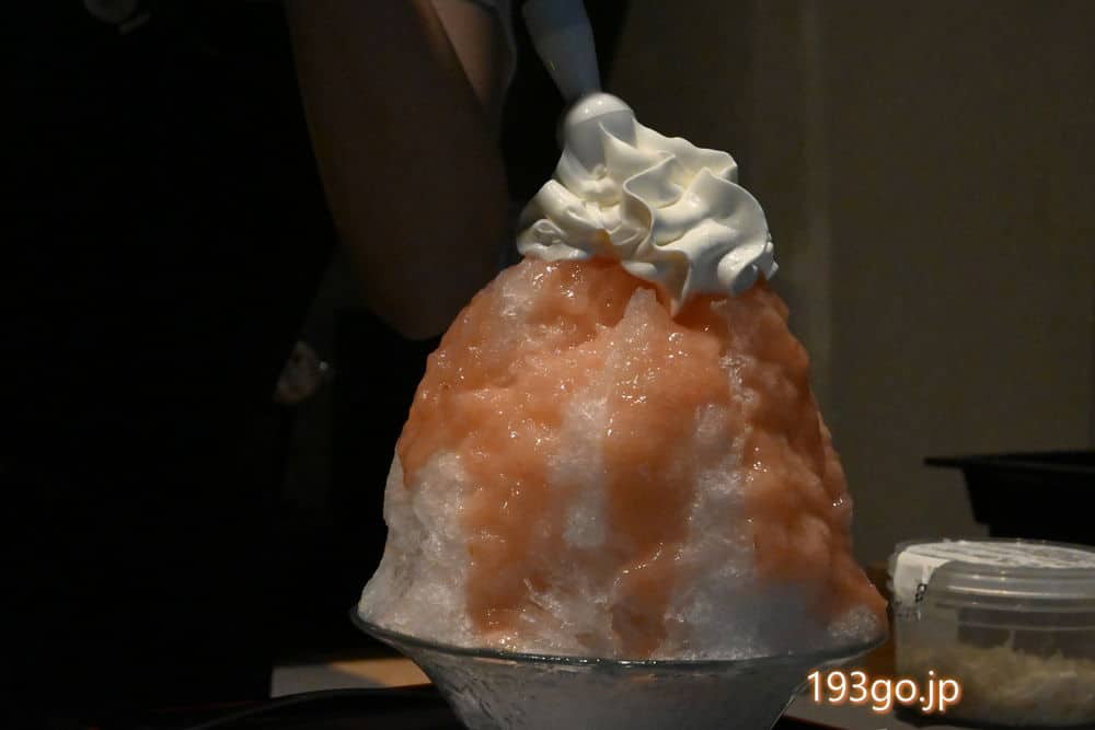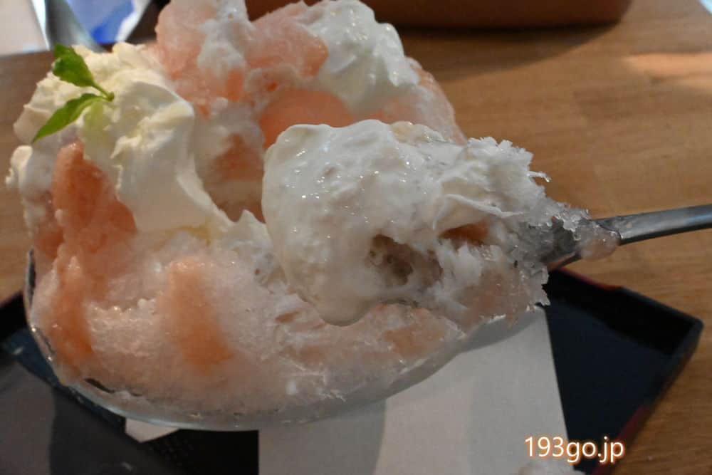 ランチをお腹いっぱい食べた後でも、この山盛りカキ氷は、ペロリと食べちゃう軽いくちどけで、