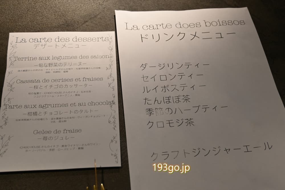 シェフ(店主)が地産農家から直接仕入れる旬の食材を使ったデザートコース