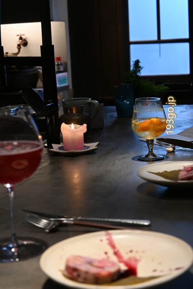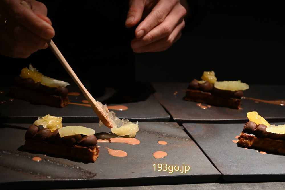 フランス菓子をベースに、麹や和の食材を組み合わせた独自のメニューは毎回目の前で完成し、見ごたえ・食べ応えがあった。