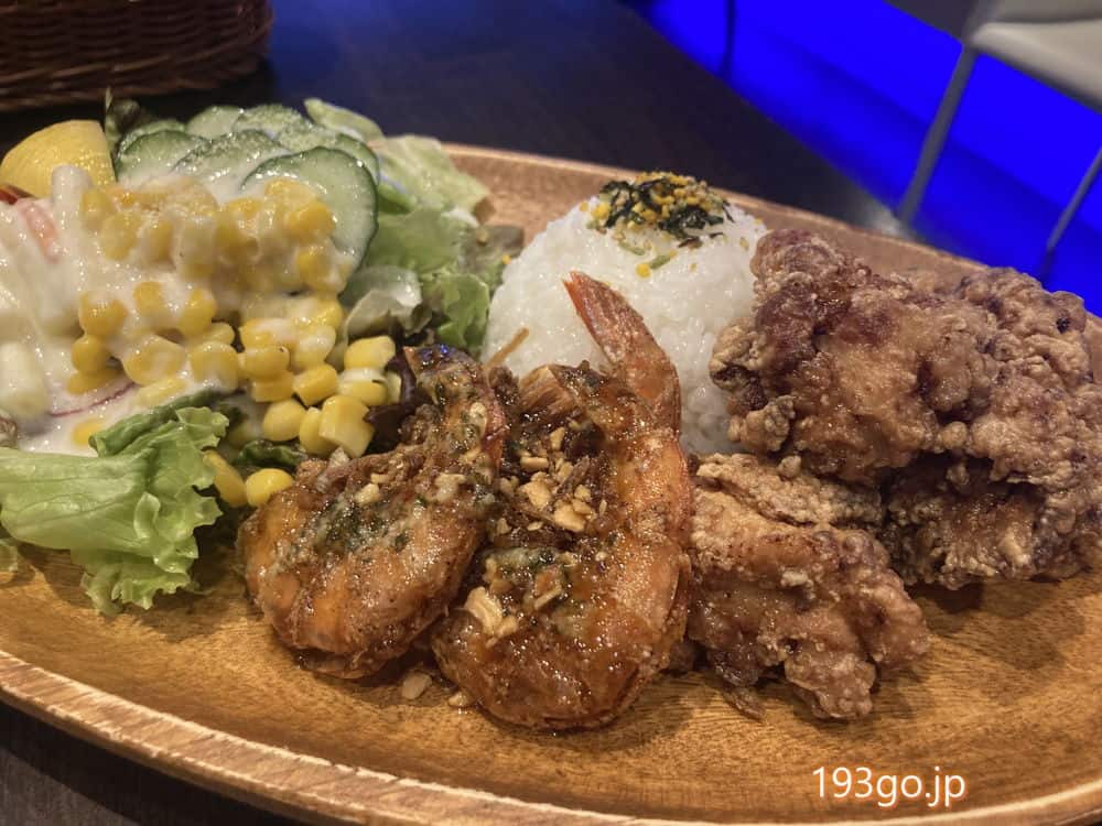 ・ガーリックシュリンプミックスプレート(シュリンプ3尾、モチコチキン4個)1,628円