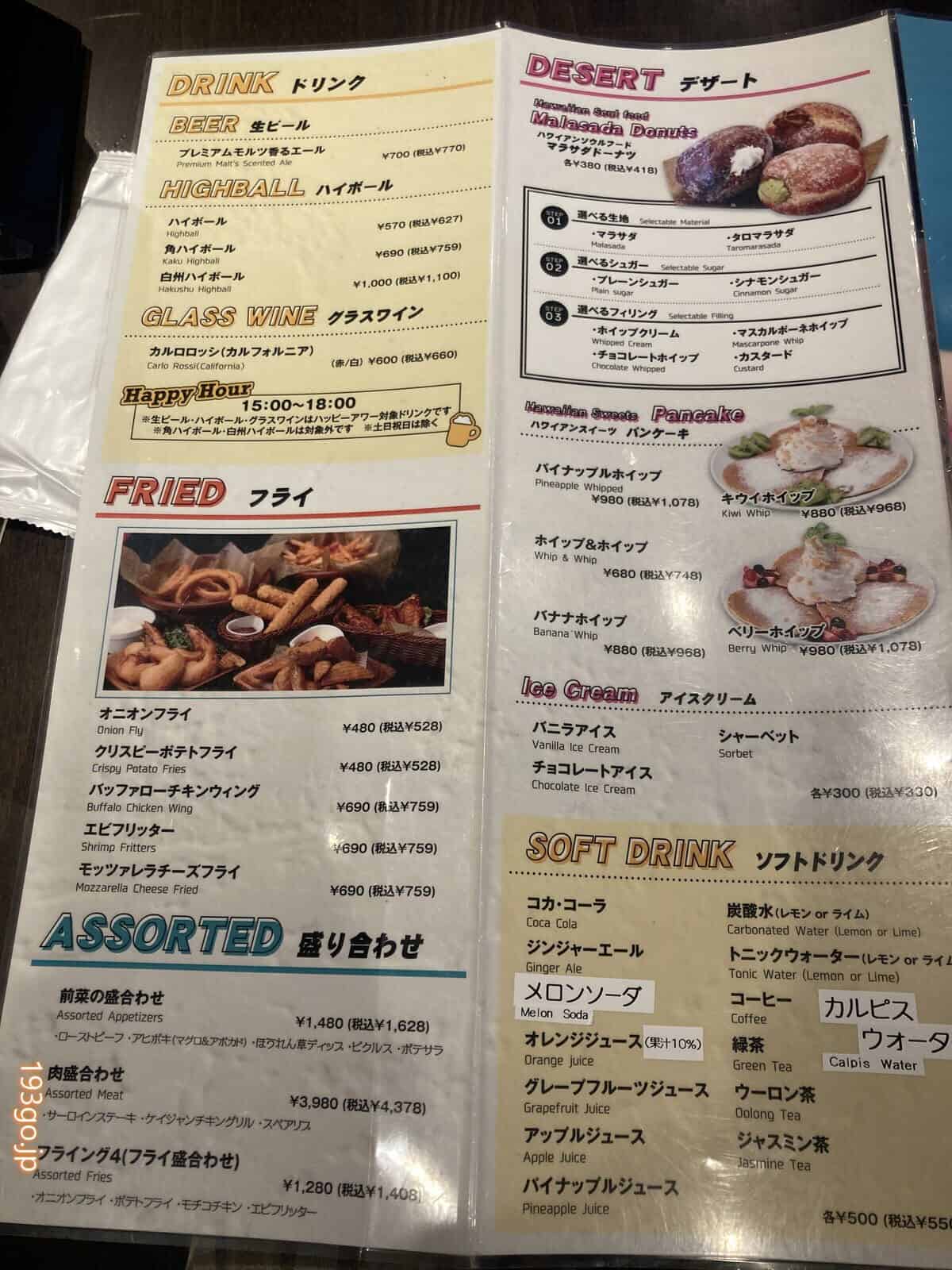 「S-PARK(エスパーク)」のメニュー(ハンバーガーやステーキ、ハワイアンスイーツなど)