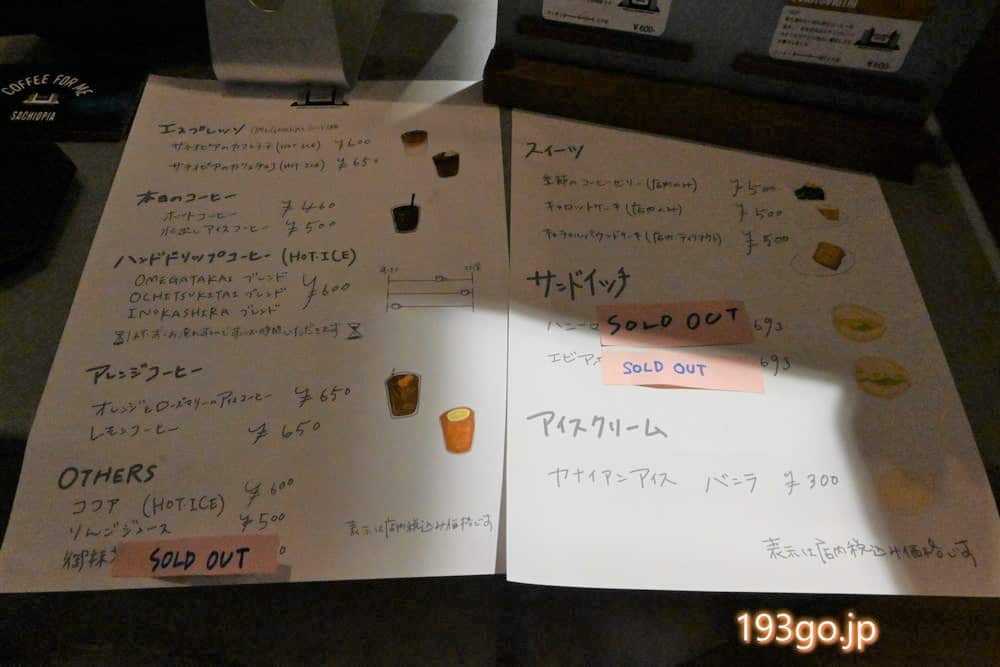 「SACHIOPIA COFFEE(サチオピアコーヒー)」のドリンク&フードメニュー