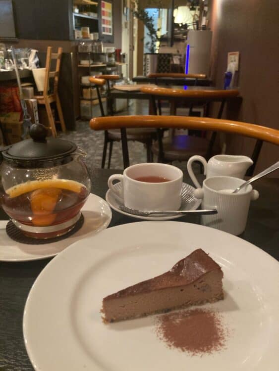 セットのショコラチーズケーキ&ディンブラオレンジ。