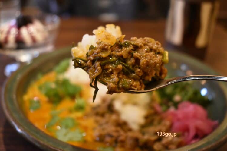 本日のカレーは「有機人参の葉のキーマカレー」。
