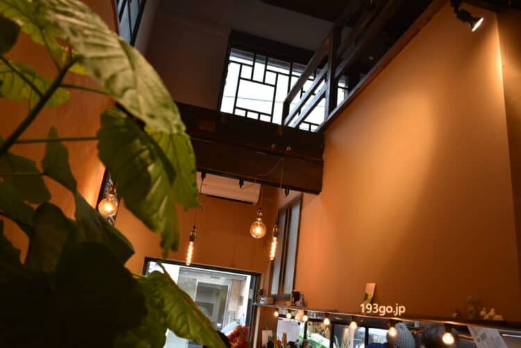 植物が置かれた木の温もりを感じるおしゃれカフェ。ペンダントライトも可愛い!