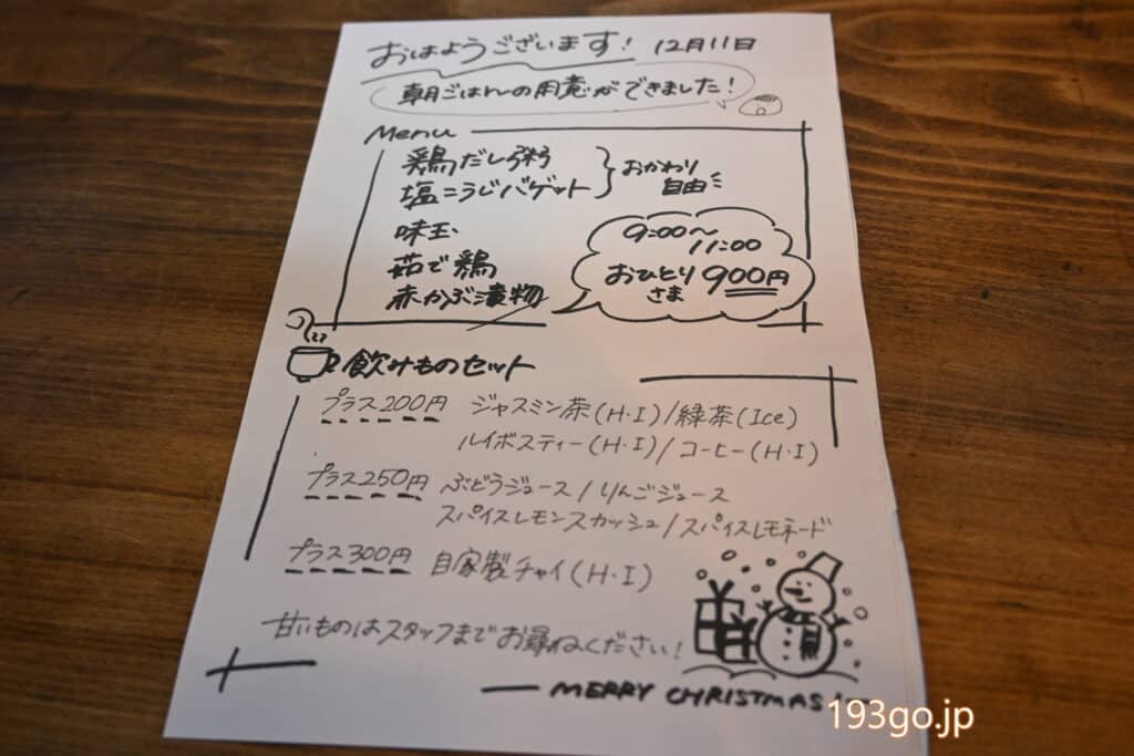 朝ご飯メニューは900円(税込)