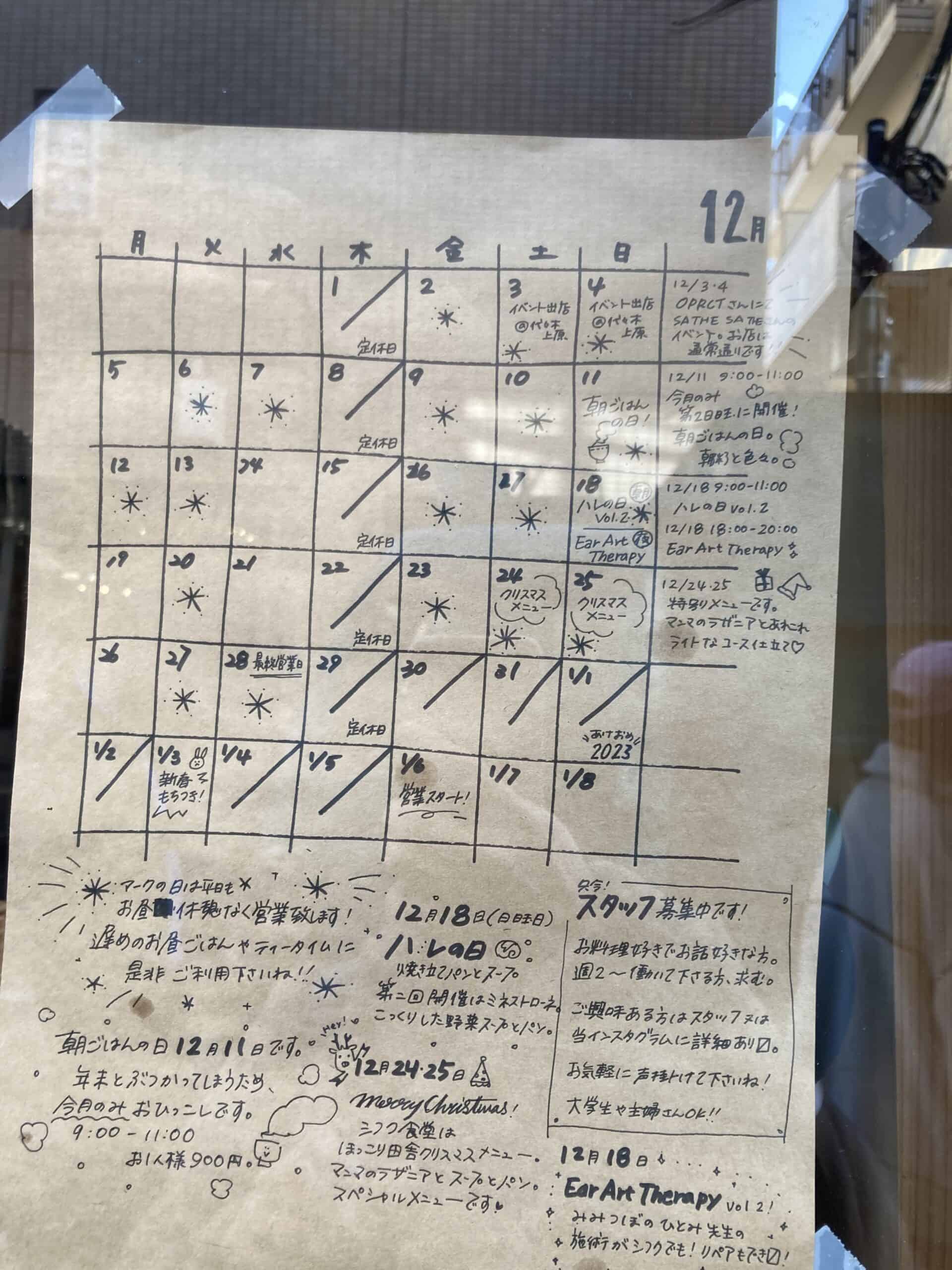 開催日はお店のインスタグラム、また、店頭のカレンダーでチェックできる。