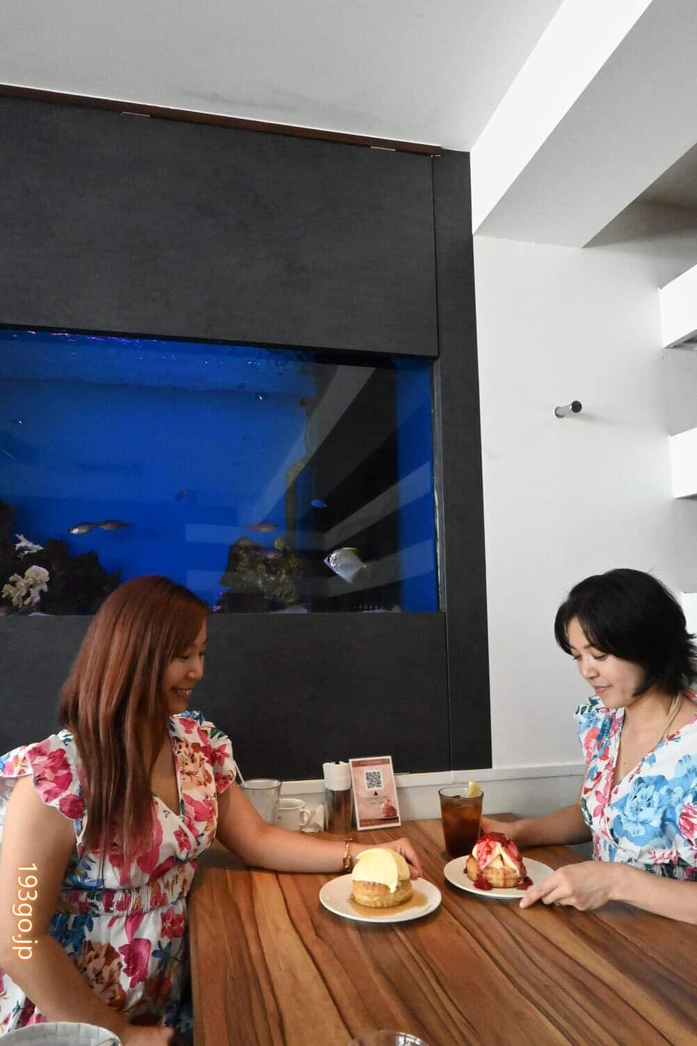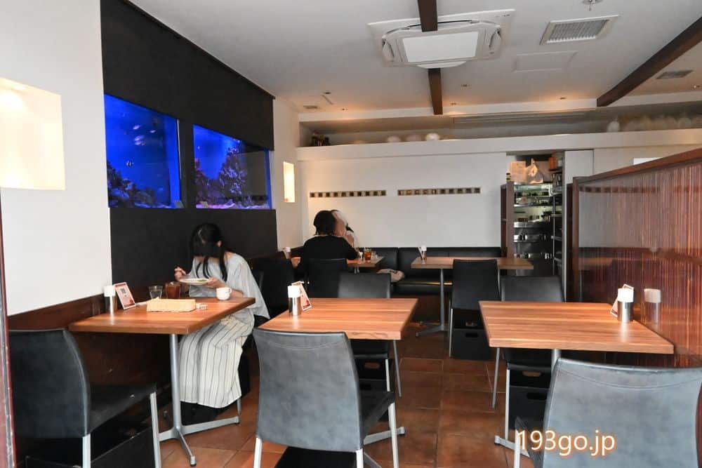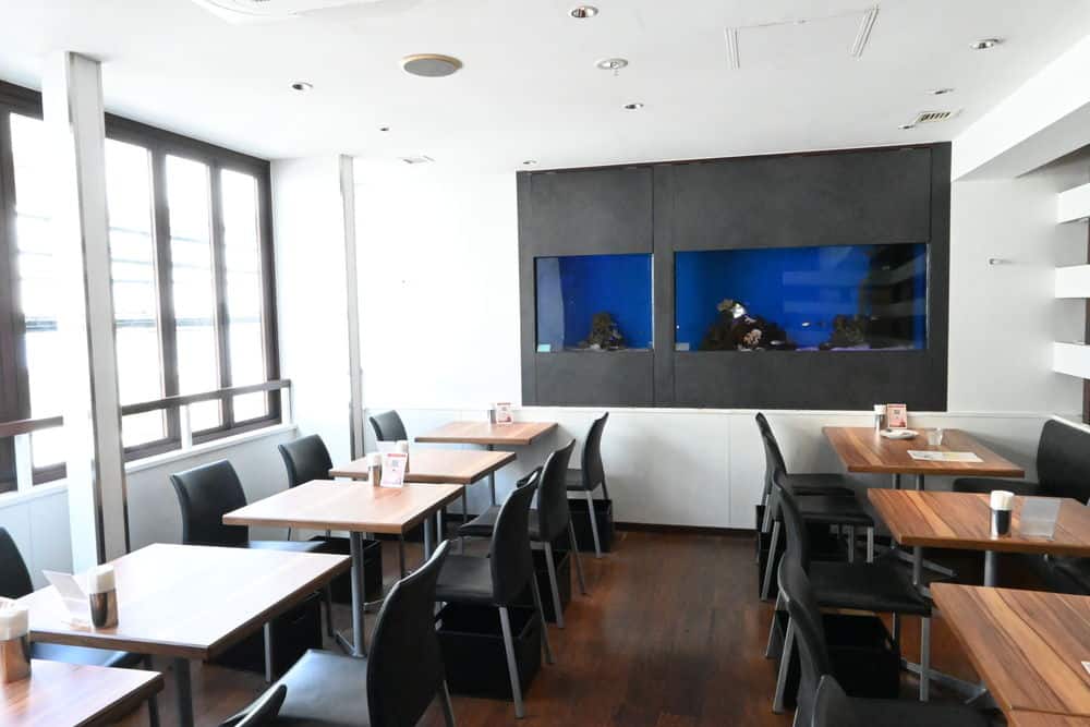 1階と2階に水槽がある。アクアリウムを感じる涼しい空間。