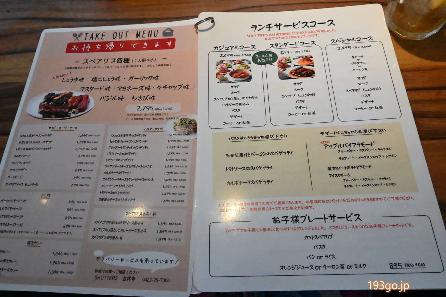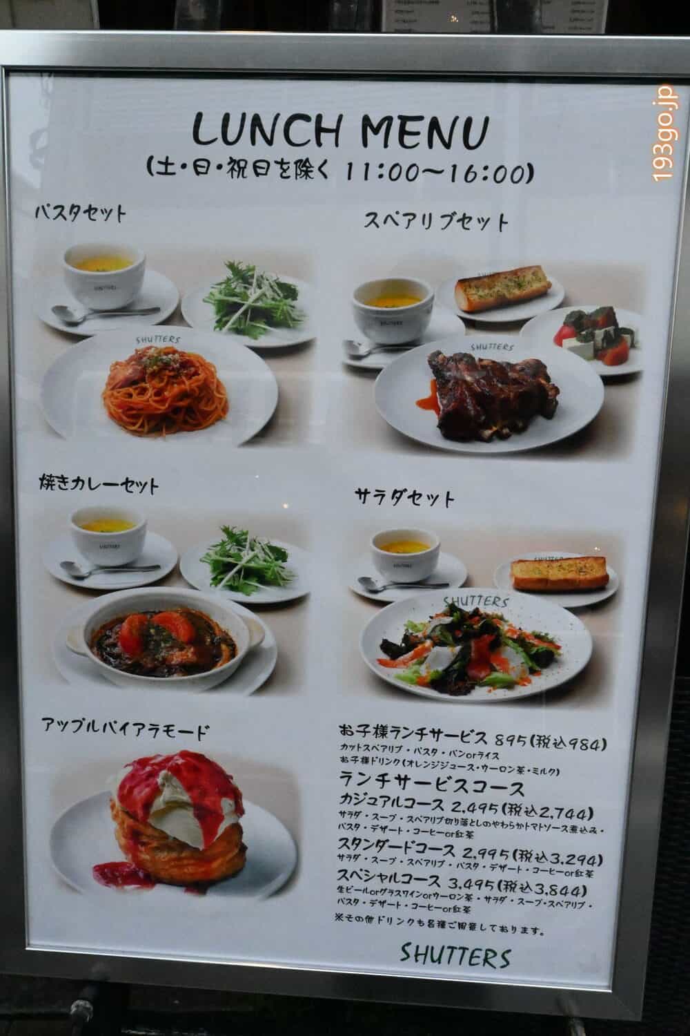 「SHUTTERS(シャッターズ)吉祥寺」平日限定ランチセット(メニューと値段)