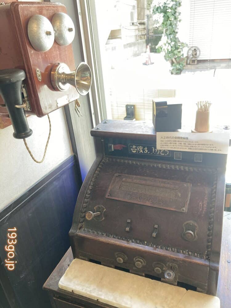 入口側には大正時代のレジスターが置かれてる。店主のコレクションだそう。