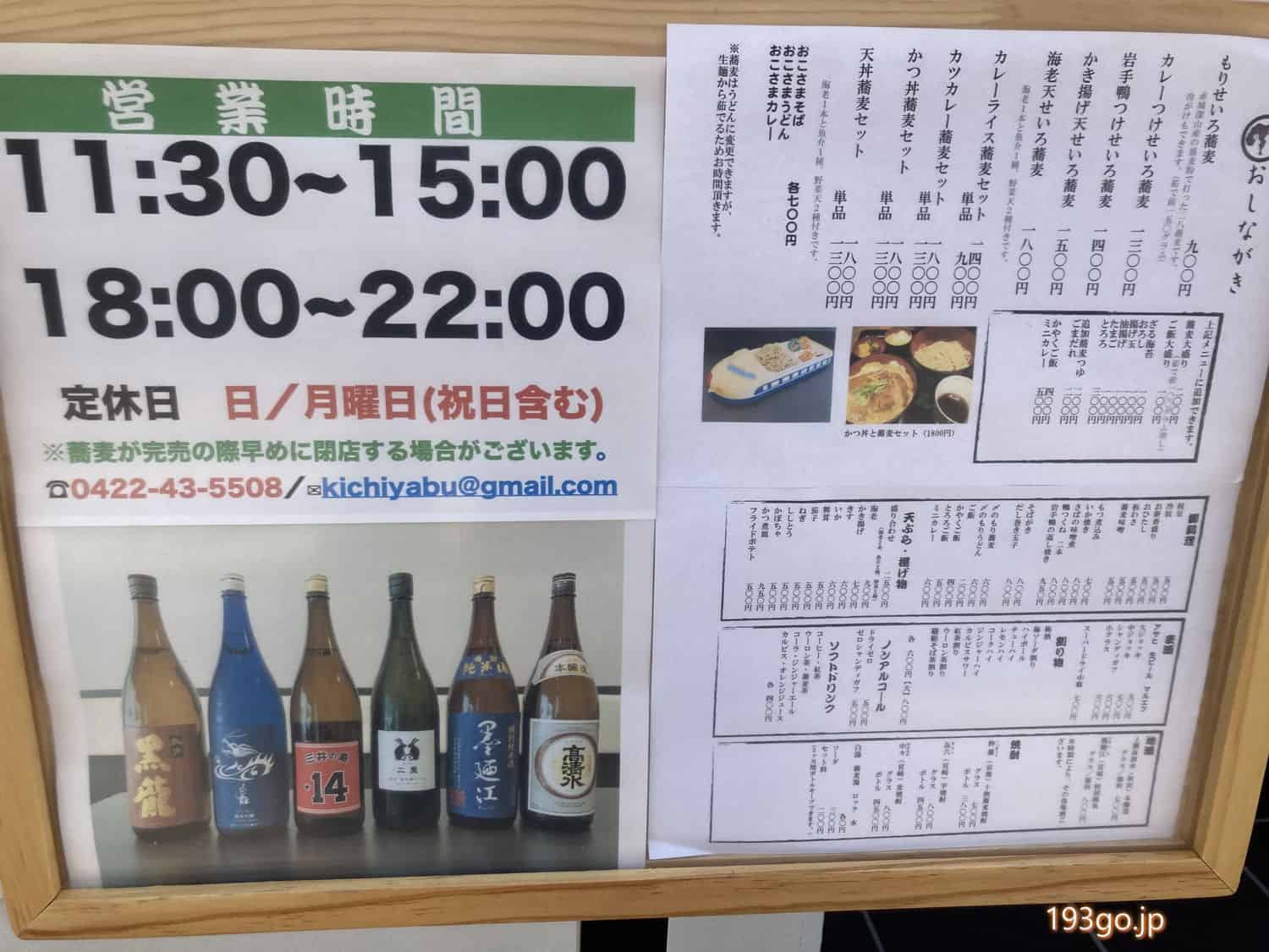 「吉祥寺やぶ」のメニュー(ランチ、ディナー)