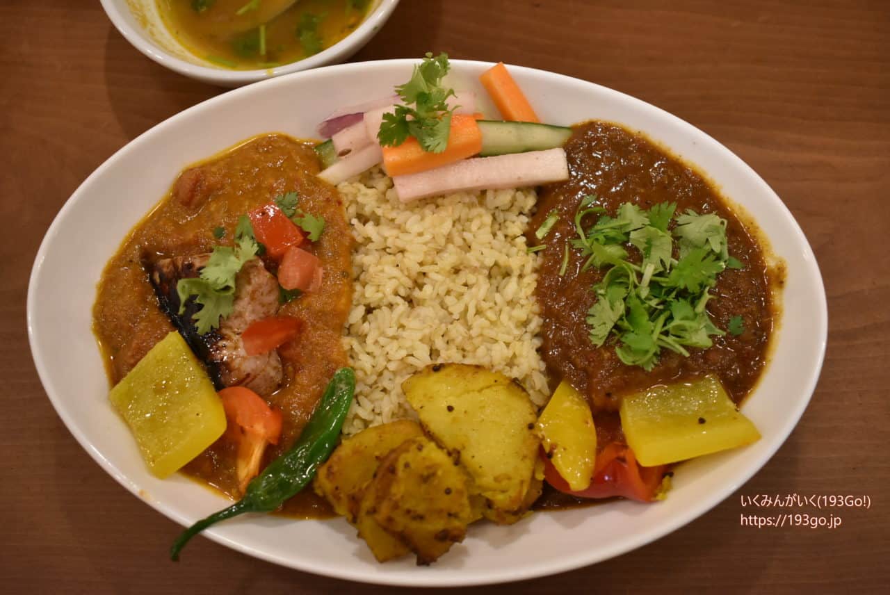 彩りと盛りが良い!「平日ランチ限定ダブルカリー」(2種盛り)