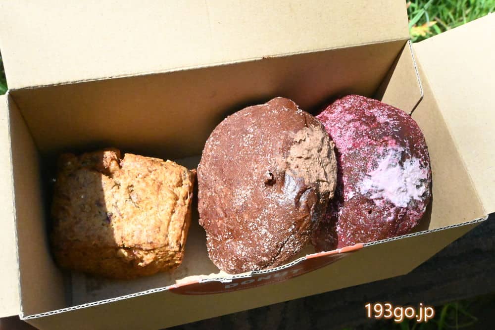 ダブルショコラ、ベリーカカオと、スタッフ一押しのバナナスコーン:380円をゲット。