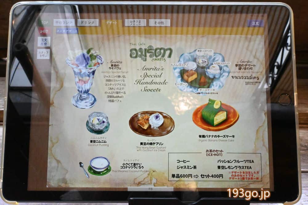 ランチメニュー(平日11:30〜15:30)、映えるタイスイーツも