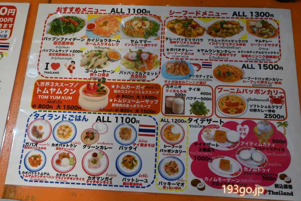 ランチメニューは、カオマンガイやガパオライス、トムヤムクン、パッタイなど。