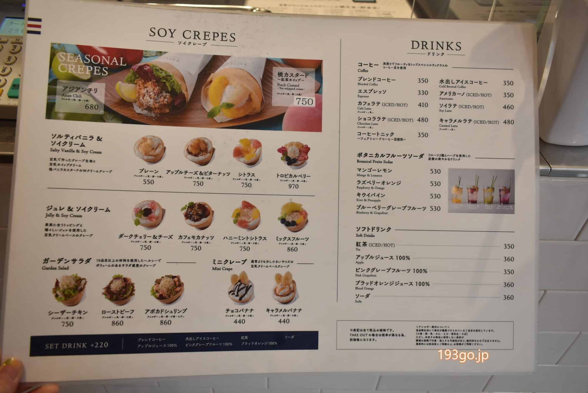 ベイフローカフェのクレープは、豆乳、てんさい糖を使用した生地に豆乳クリームを包み込んだすっきりした甘さで低カロリーのヘルシークレープ。