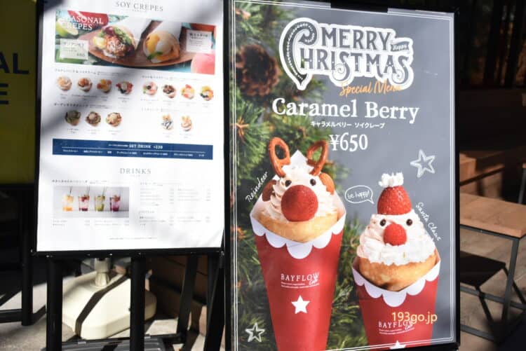 吉祥寺の東急百貨店の真裏にあるクレープ店「BAYFLOW cafe (ベイフローカフェ)」で11月12日から発売のクリスマス限定クレープ。