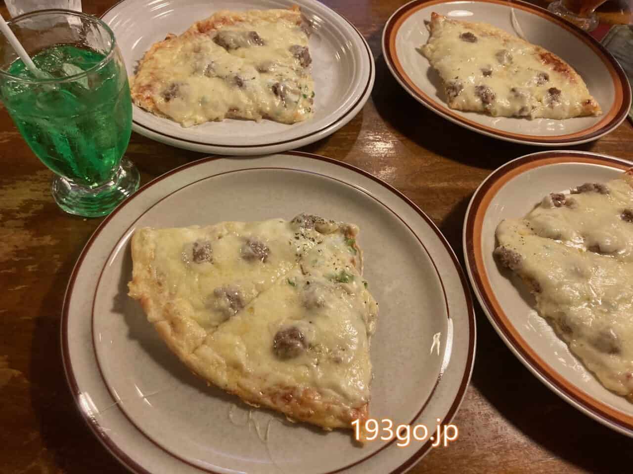 ランチセットのピザは2ピースで、ワンホールの4分の1。