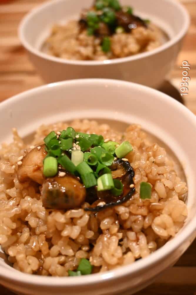 〆のごはんは、牡蠣の炊き込みご飯。お米は玄米を使用していて、プチプチした食感がいい。