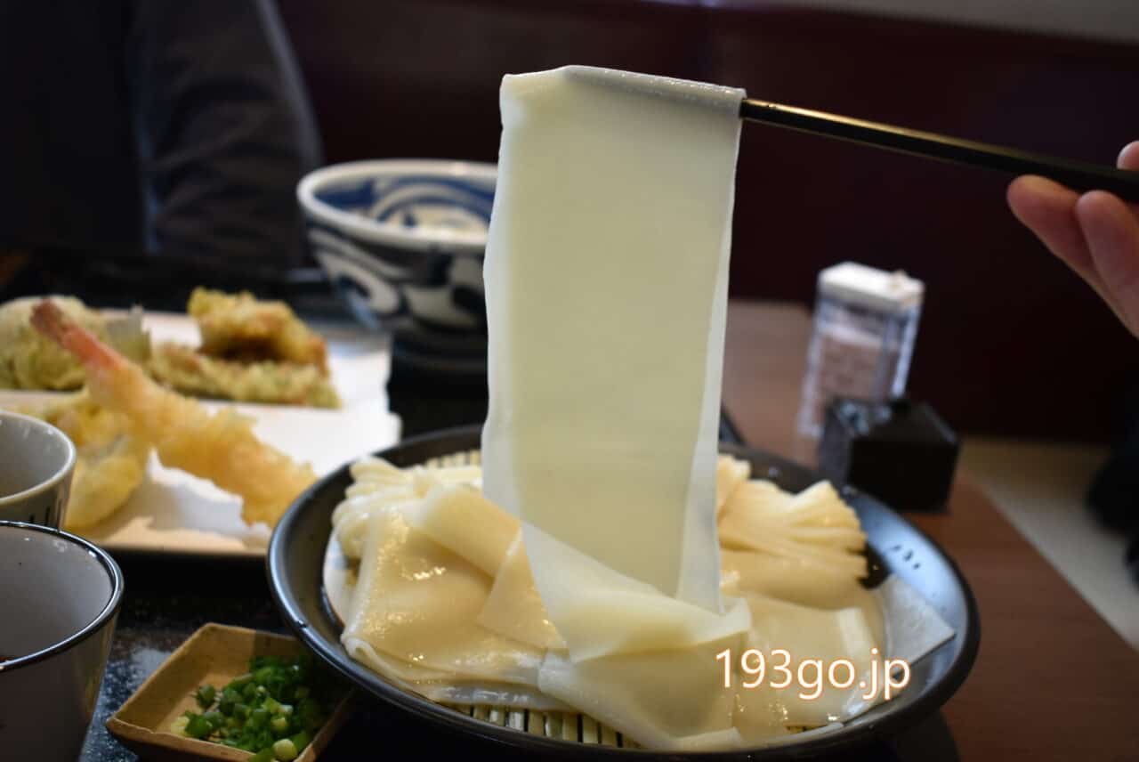 現在、こちらでは数量限定で「ぴらぴらざるうどん」が食べられる。