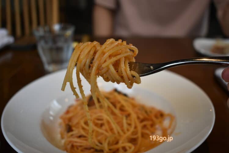 もう少しジューシーかなと思ったら、オリーブオイルやトマトソースも控えめだった。
