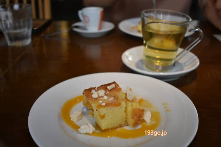 デザートはマンゴーソースのかかったパウンドケーキ。