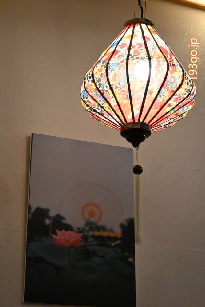 カラフルなランタンが飾られた店内。