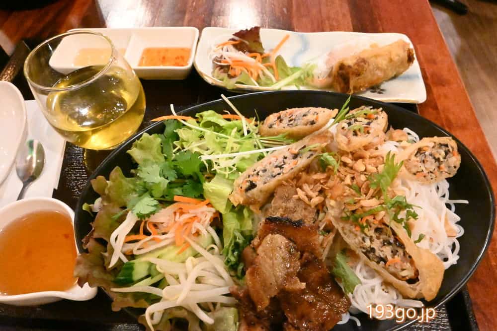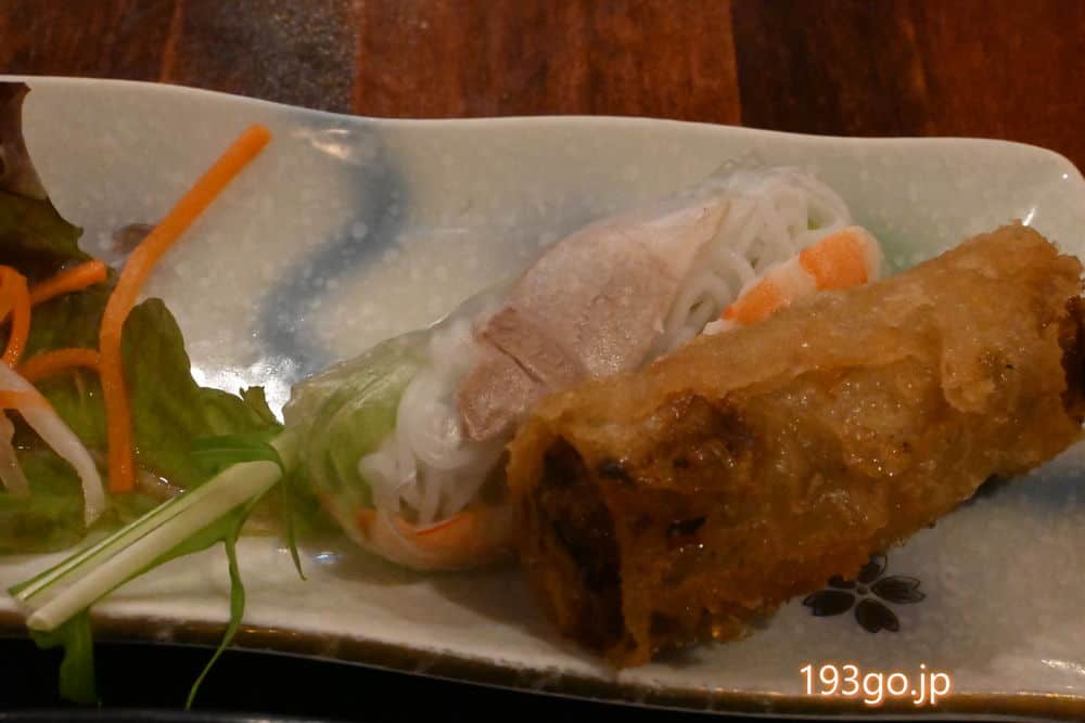 平日ランチ(11:00~15:30)は、嬉しいことにこの揚げ春巻きと生春巻き、アイスがプラス180円で付けられる。これは付けない方が損だね。