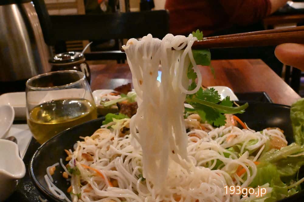 フォーよりも細麺のもちもちした米麺。ビーフンだね。