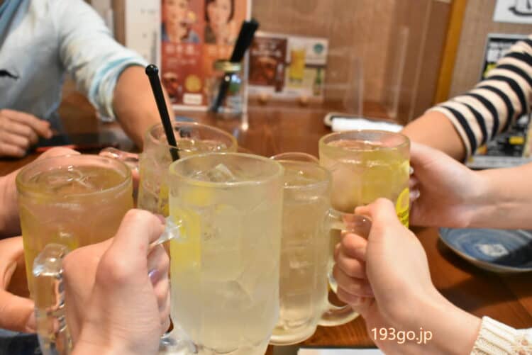 やまをんちハイボールに、やまをんちジンジャーレモンサワー、温州みかんモヒート、アロエおろしサワーなど気になるドリンクをグビグビ!