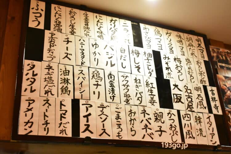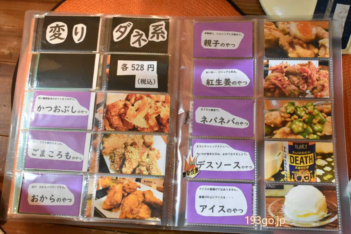 1皿5個入りでオール528円。(例外:ふつうの唐揚げ418円、吉祥寺の唐揚げ836円)