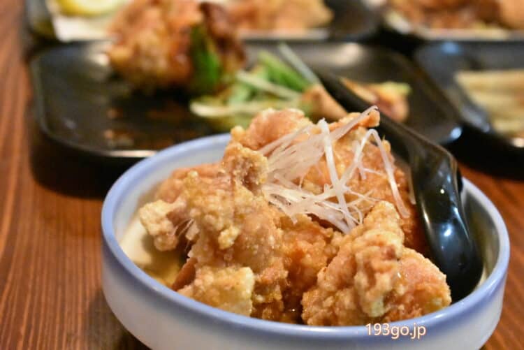 少し変わったものだと、明石風は熱々の出汁に浸った唐揚げ。揚げ出汁チキン的。